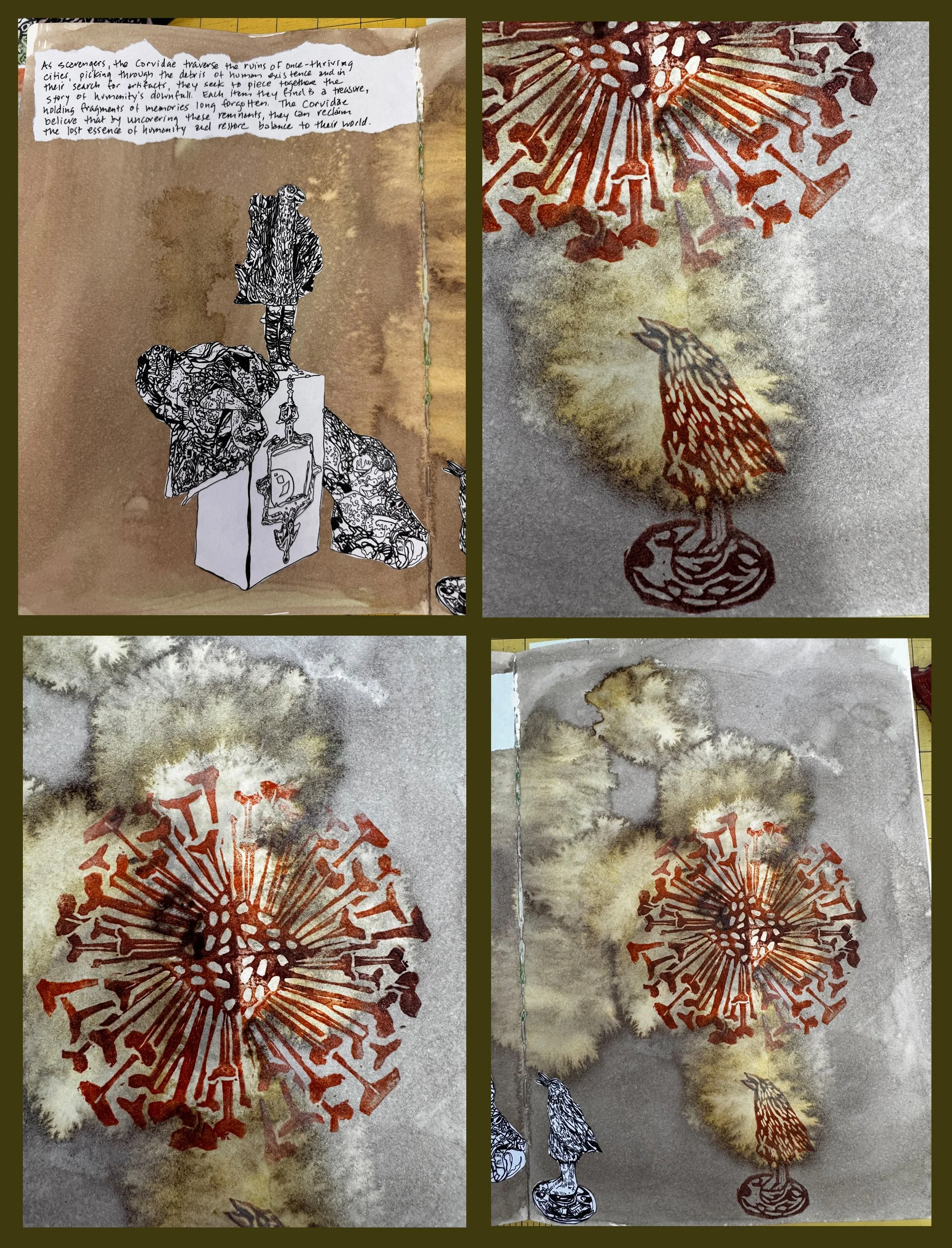 So now I have a couple of cool images. I wanted to practice writing a short description of my original stamp image in my sketchbook using the principles of design as my guideline. I did use ChatOn AI to help summarize my notes and condense into a smaller paragraph. It also checked grammar, spelling, etc.