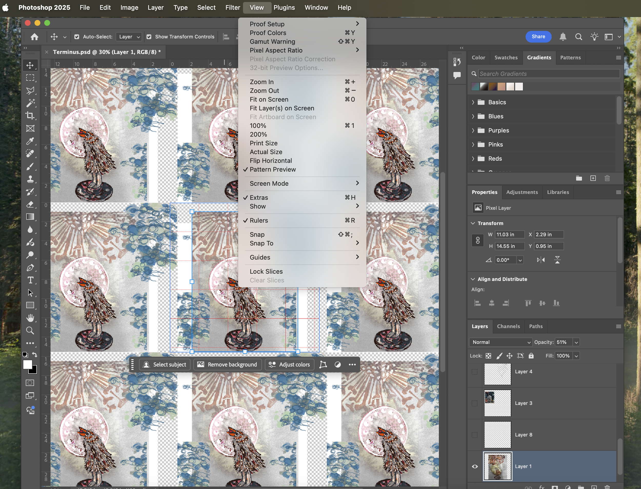 Using “Preview Pattern” under “View” to help visualize a pattern that I would like to use on a product.